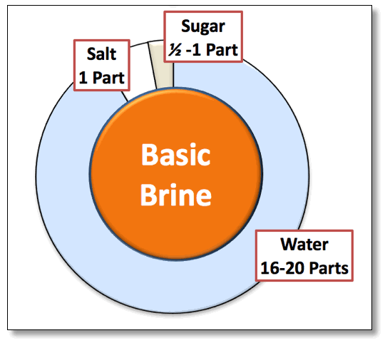 Brining is done under refrigeration at 36-40° F/2-5° C. Brines should be fully cooled before use.