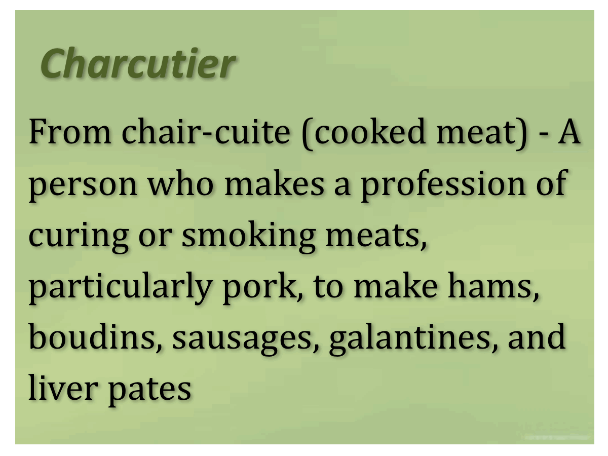 The art of preparing various types of meat through curing, grinding, cooking, or smoking is the foundation of charcuterie. Using forcemeat in pâtés, terrines, and various other derivatives is a hallmark of the craft. Sausages, salumi, bacon, and ham are all considered part of the charcuterie tradition. Charcuterie is derived from French traditions and terminology that has evolved and transformed.