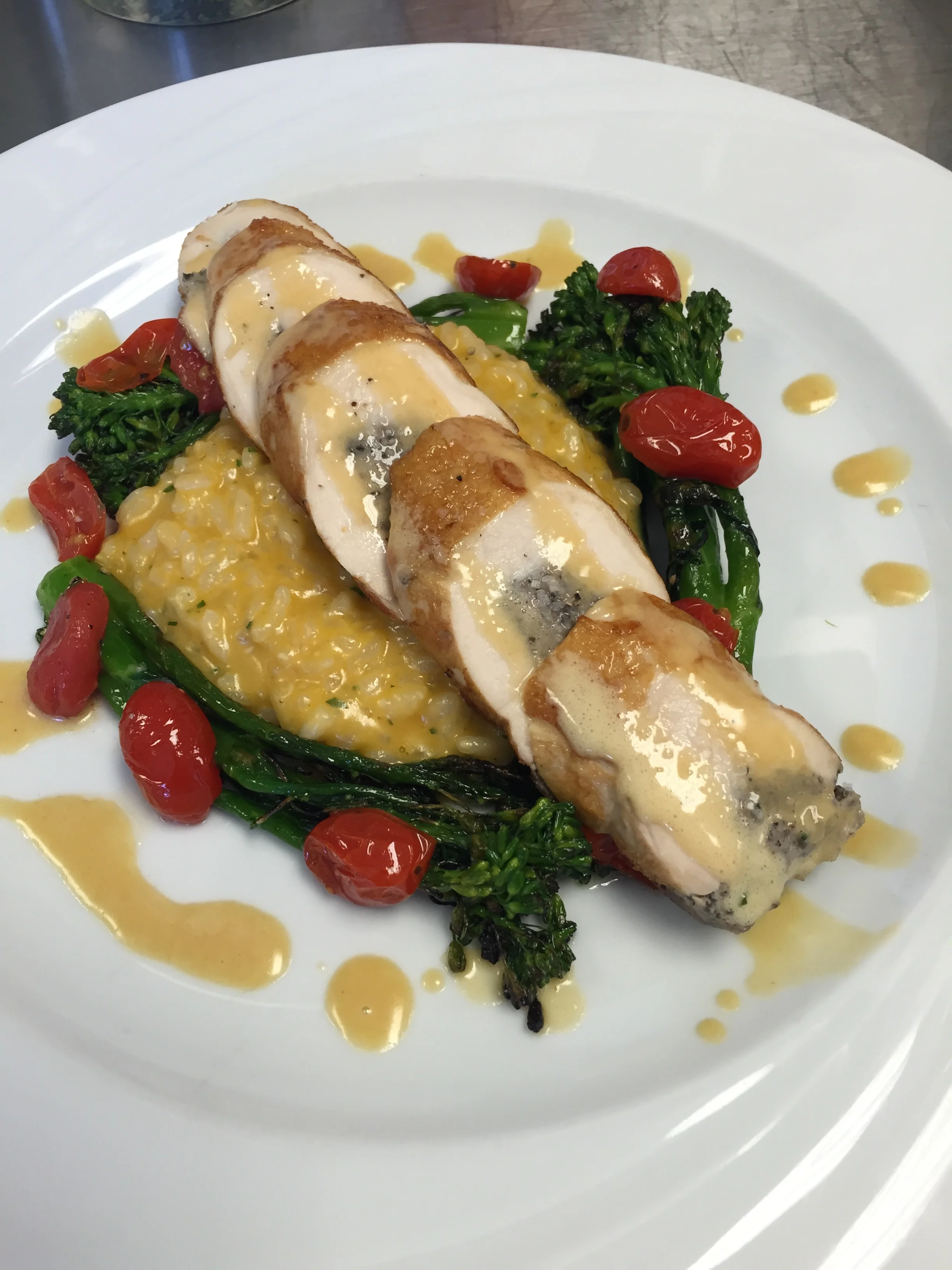 Prepared like contemporary galantines, a roulade refers to a rolled item creating a pinwheel effect. A flattened chicken breast or butterflied pork loin are two examples. A roulade can be filled with just about anything and served hot or cold.
