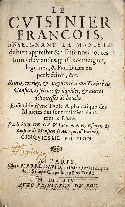 La Varenne was the author of Le cuisinier françois (1651), the founding text of authentically French cuisine. La Varenne broke with the Italian traditions that had revolutionized medieval French cookery in the 16th century. La Varenne was the foremost member of a group of French chefs, writing for a professional audience, who codified French cuisine for the age of Louis XIV. The others were Nicholas de Bonnefons, Le jardinier François (1651) and Les Délices de la Campagne (1654) and François Massialot, Le Cuisinier royal et bourgois, (1691), which was still being edited and modernized in the mid-18th century.