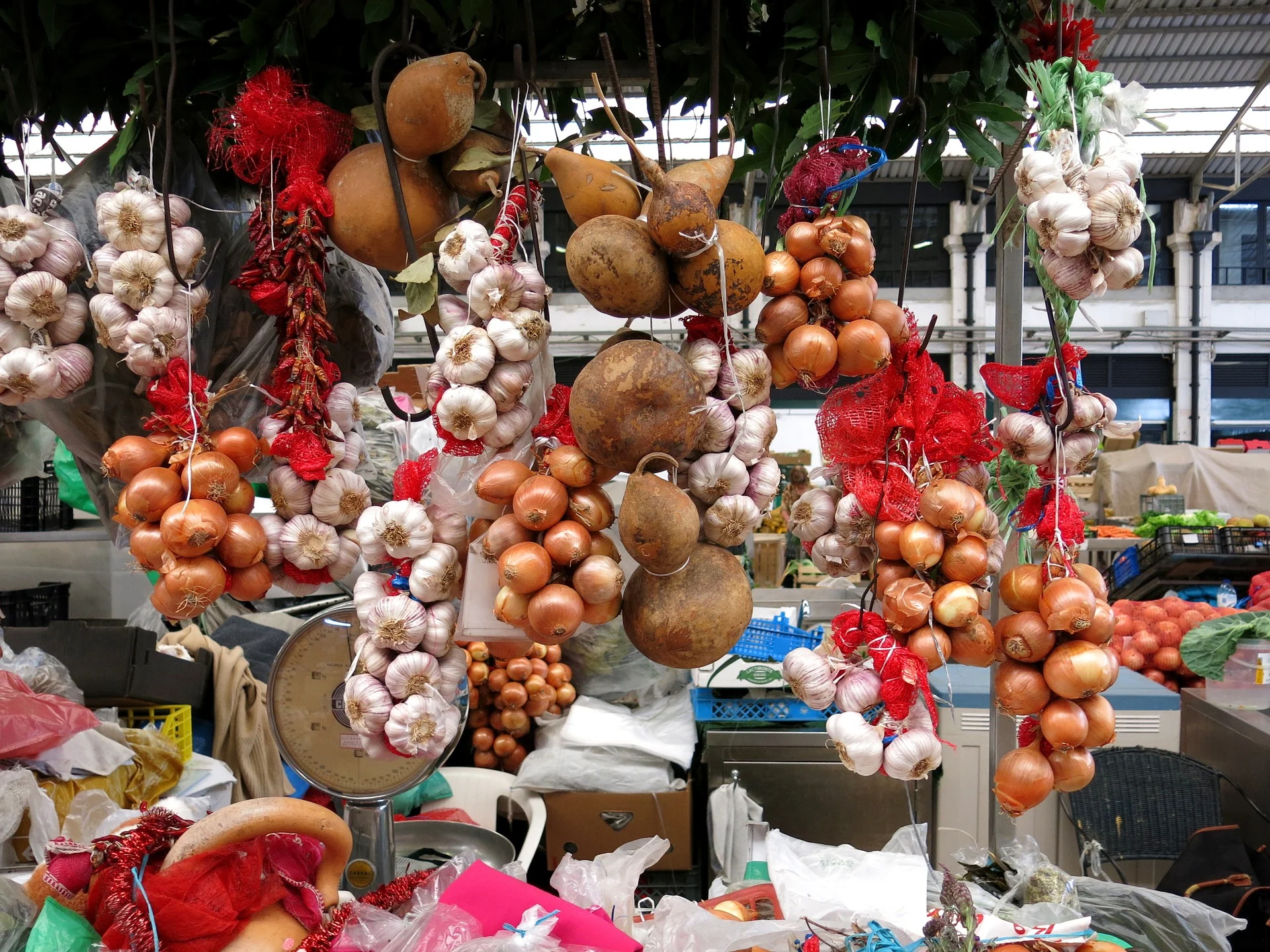 Agriculture products of Portugal include rice, a staple in most meals, kale and turnip greens, corn, barley, olives and olive oil, nuts, cherries, grapes, and mushrooms. Because of the country’s long coastal regions fish and seafood are popular, including fresh sardines, octopus, squid, crabs, prawns, salt cod, and sea bass. Meats include pork, lamb, goat, and beef. Cured meats include Presunto, a dry cured ham similar to Spanish Serrano, chouriço, a spicy pork sausage with piri piri peppers and garlic, and linguica, a dry-cured pork sausage with garlic and paprika. Popular herbs and spices include cilantro, cinnamon, bay, paprika, and parsley. Wine making is spread throughout the country with white wines produced in the northwest coastal region of Vinho Verde, down to the southern Peninsula de Setubal where Castelão red wine production is concentrated. Two of the most popular wine exports include Port, produced near the city of Porto in the north, and Madeira produced on the island of the same name. These wines are fortified through the addition of high alcohol grape spirits in a variety of styles from dry to sweet.