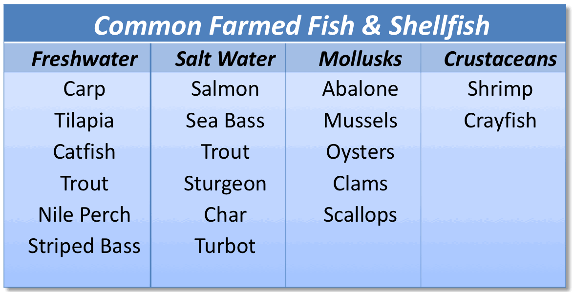 Aquaculture, mariculture, and aquaponics are names used for a variety of farming techniques for fish, seafood, and marine produce. The techniques are used for freshwater and salt water fish and are employed in above ground tanks, ocean pens, and in open waters. Fish farming produces a steady supply of fish that are raised in a carefully controlled environment to uniform size and formation, much like breeding poultry or cattle. Farmed fish can be quickly processed and delivered fresh to market in a short time. They can also relieve the pressure on endangered fish species caused by over fishing.